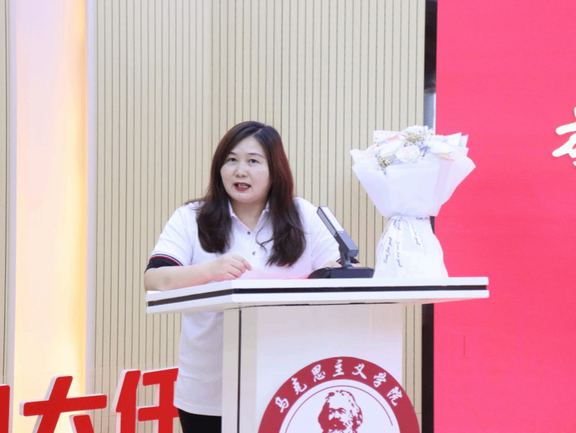 即将赴北京师范大学攻读硕士学位的王铟琦作为本科毕业生代表发言。她表示,在院校组织中经历了从干部到副部到A类的工作历程中,收获了“知行合一”人生体验,收获了可贵的金子般战友情谊;在大大小小的比赛中砥砺自己的意志品质,提升自己教育教学技能。她说,四年里感谢学院领导、老师、家长的培养,尤其是师长们的谆谆教诲,是马院的师长成就今天的他们,坚信每一位马院人都将成为政治强、情怀深、思维新、视野广、自律严、人格正的好教师。