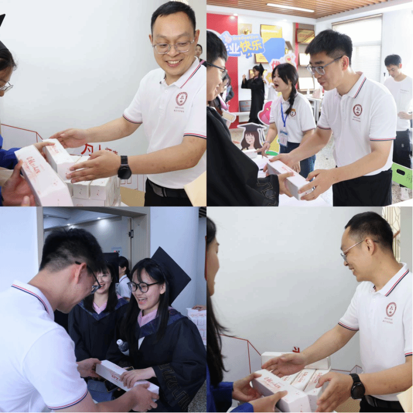 院党委书记方琼为考研之星等优秀毕业生代表颁发纪念品、专属校友卡。