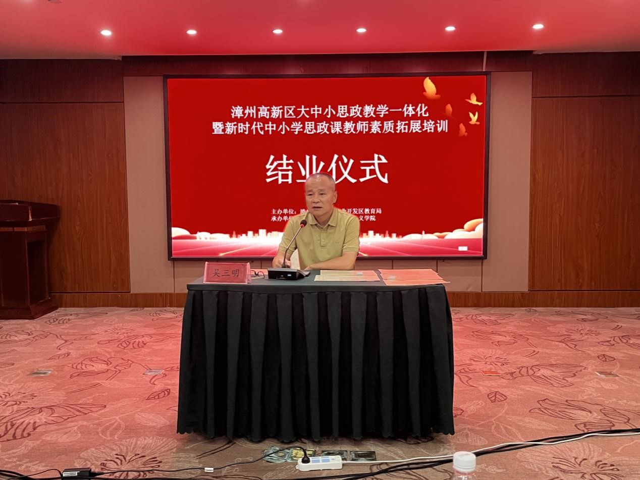 讲座结束后举行了结业仪式,漳州高新区教育局安全股负责人吴三明出席结业仪式。吴老师总结了三天的培训工作,并对各位学员提出了期望和要求。