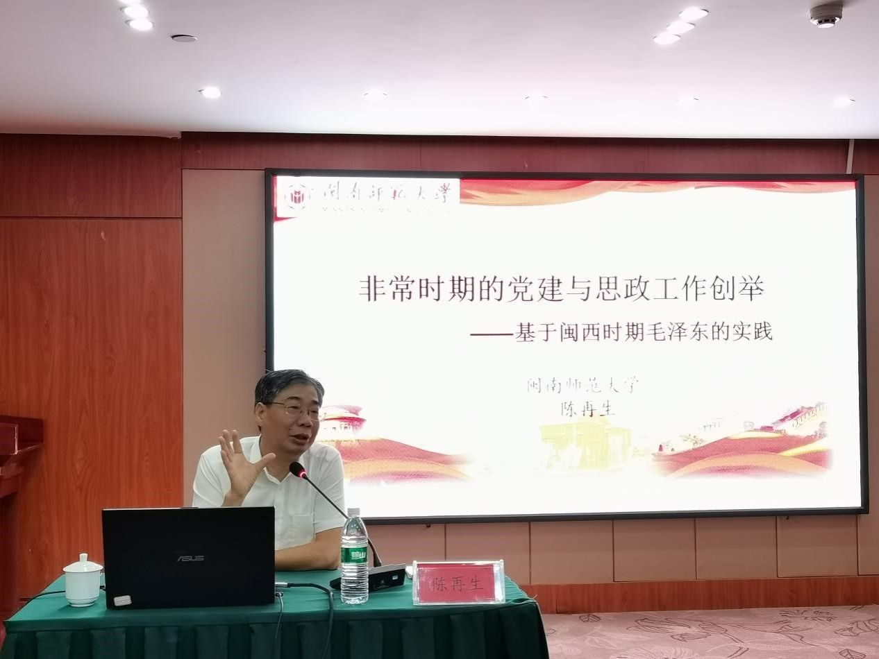 开班仪式后,陈再生教授为学员们作《非常时期的党建与思政工作创举——基于闽西时期毛泽东的实践》的专题讲座。陈教授从“何谓非常时期”“非常时期的创举”“实践创举的启示”三个方面,生动讲解了毛泽东在闽西活动期间的党建与思政工作创新。