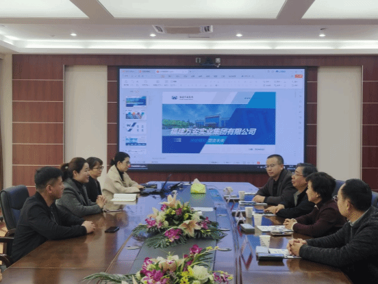 在万安集团会客室,集团负责人就集团发展概况、代表产品、技术创新、发展理念、动漫屋等进行了详细的介绍,她表示福建万安实业集团是一家立足国家新兴环保产业的国家高新技术企业,数十载深耕热固性粉末涂料的研发生产,产销量多年位列全国同行业第三,曾获得国家级“守合同重信用单位”“国家绿色工厂”等诸多荣誉。学院负责人就学院发展历程、办学规模、学科特色、人才培养等进行交流介绍。随后双方围绕毕业生就业、岗位需要、薪资待遇、人才招聘等进行沟通、交换意见,并期待在后续毕业生就业工作中常交流、多合作。