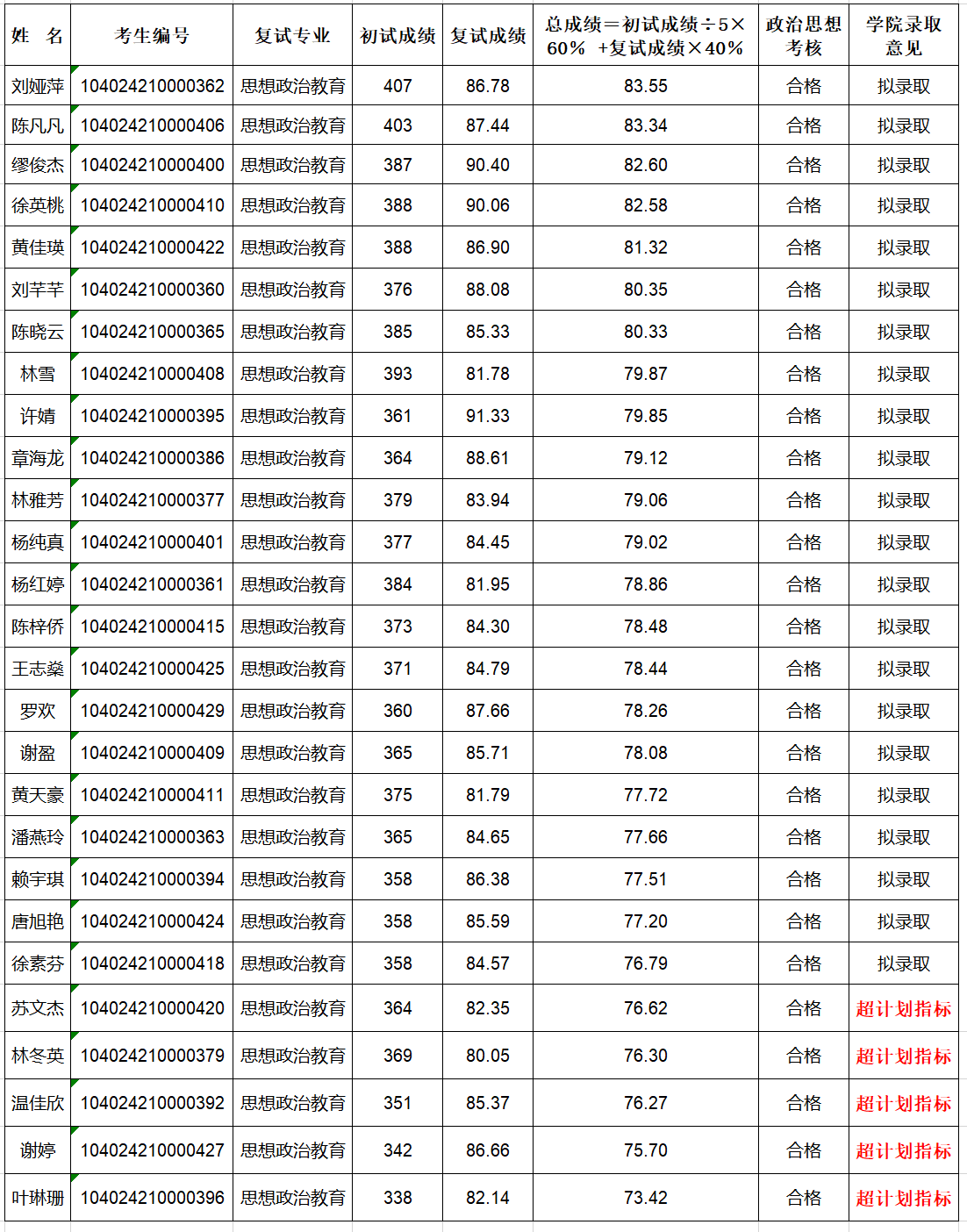 动漫屋 2024年一志愿复试结果及拟录取情况公示(思想政治教育专业)