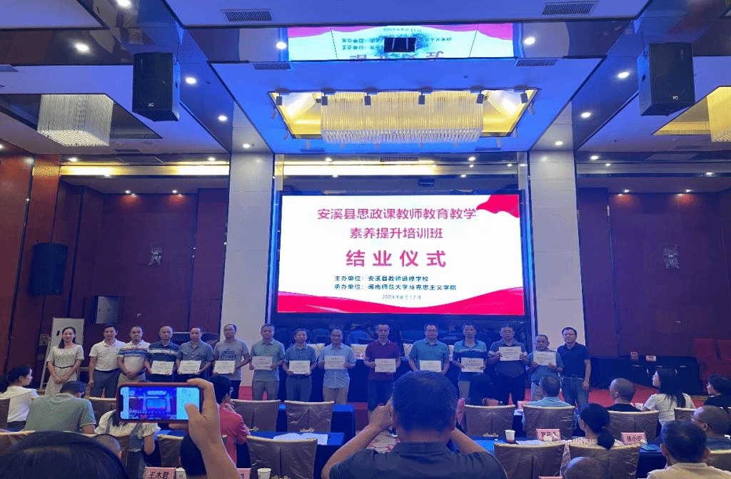 8月17日上午举行了结班仪式。安溪县教师进修学校培训处主任王云晖、副主任黄上海,以及安溪县政治学科教研员李培火和冯财富出席结班仪式。