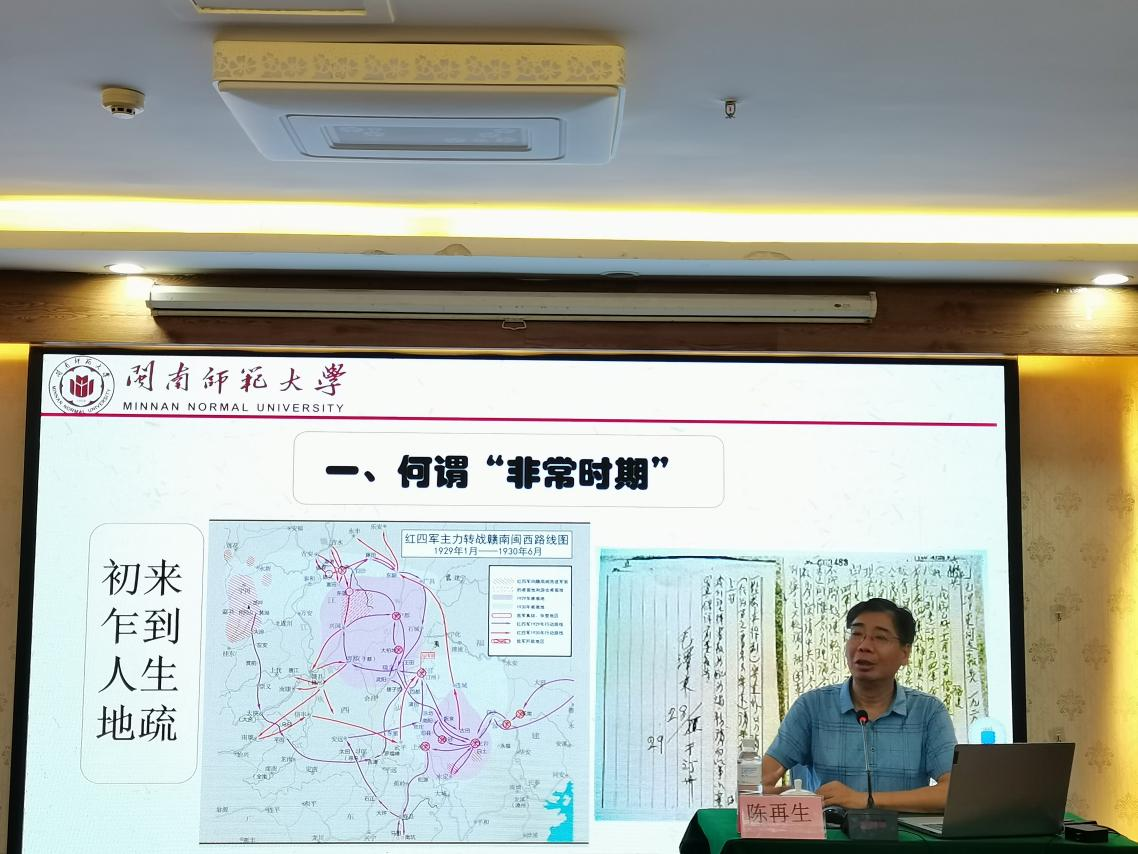 开班仪式后,陈再生院长为学员们做了《非常时期的党建与思政工作创举——基于闽西时期毛泽东的实践》专题讲座。陈院长引用大量史料带领学员走进革命岁月,从“何谓非常时期”“非常时期的创举”“实践创举的启示”三个方面,生动地讲解了闽西时期毛泽东的党建与思政工作创举与成效。
