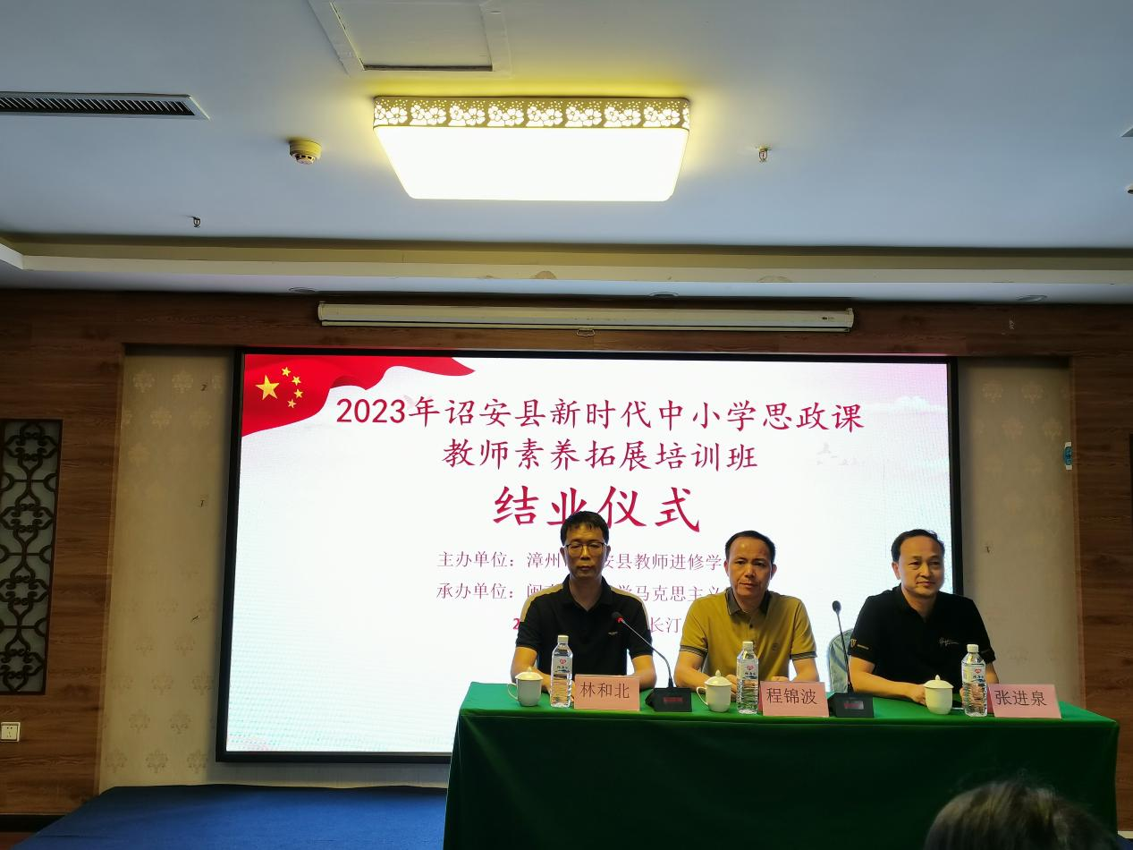 现场教学结束后举行了结班仪式。诏安县教育局思政小组组长程锦波、诏安县教育局思政小组副组长张进泉、班主任林和北出席结班仪式。