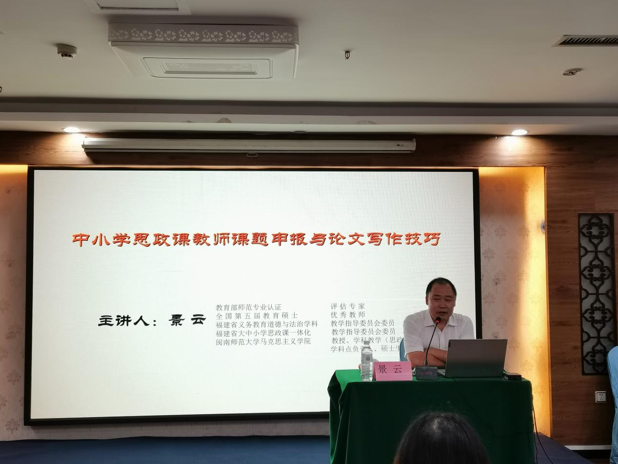 7月31日下午,学院思想政治教育系主任景云教授为学员做了《中小学思政课教师课题申报与论文写作技巧》的素养提升专题讲座。