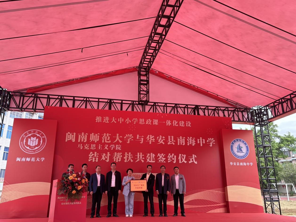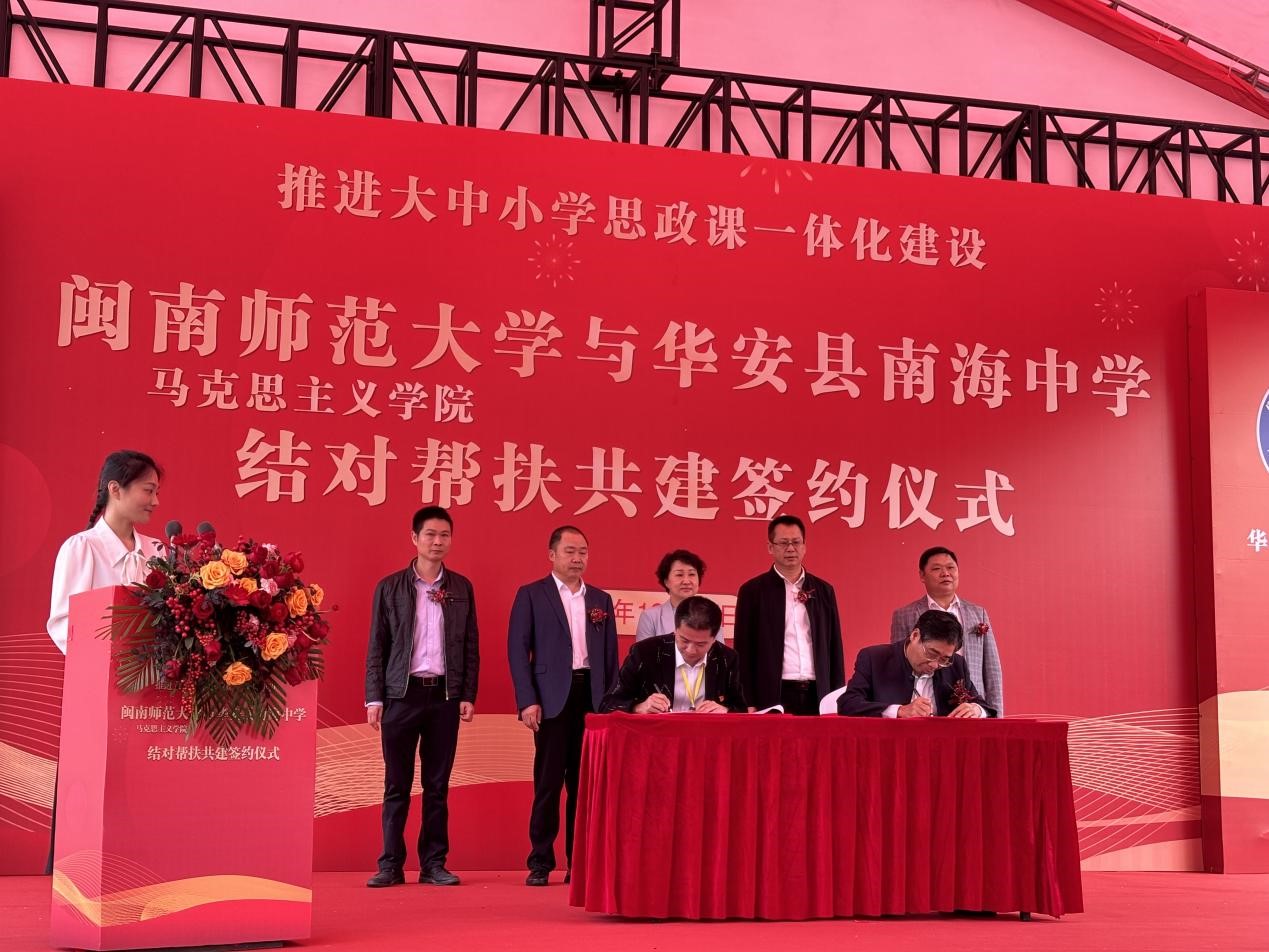 党委书记方琼、院长陈再生、系主任景云和学院研究生代表赴华安,与南海中学举行结对帮扶共建签约仪式,中共华安县委常委、宣传部部长蔡森成,县教育局党委书记、局长汤奇才,华安县教育局和仙都镇、南海中学师生代表参加了签约仪式。