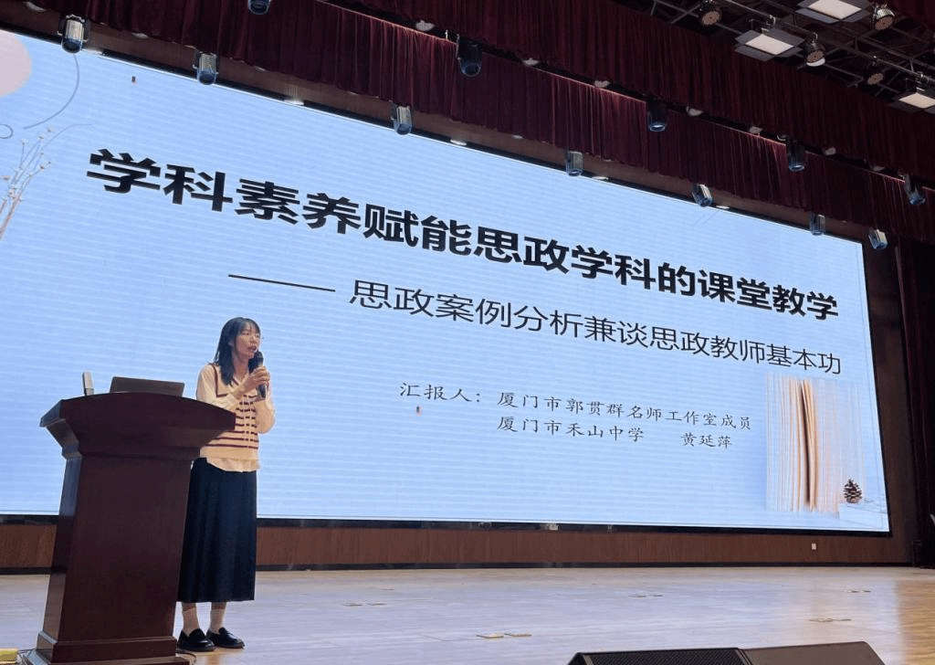 11月25日下午,厦门市禾山中学政治学科教研组长,黄延萍老师带来专题讲座《学科素养赋能思政学科的课堂教学——思政案例分析兼谈思政教师基本功》。黄老师主要从“以道驭御术:思政教师素养理论要求”、“以术载道:思政学科教学实践探讨”、“持经达变:思政教师素养养成路径”三个方面展开交流。为思政教师学科素养的提升、课堂教学的有效性、基本功的夯实提供宝贵的经验。
