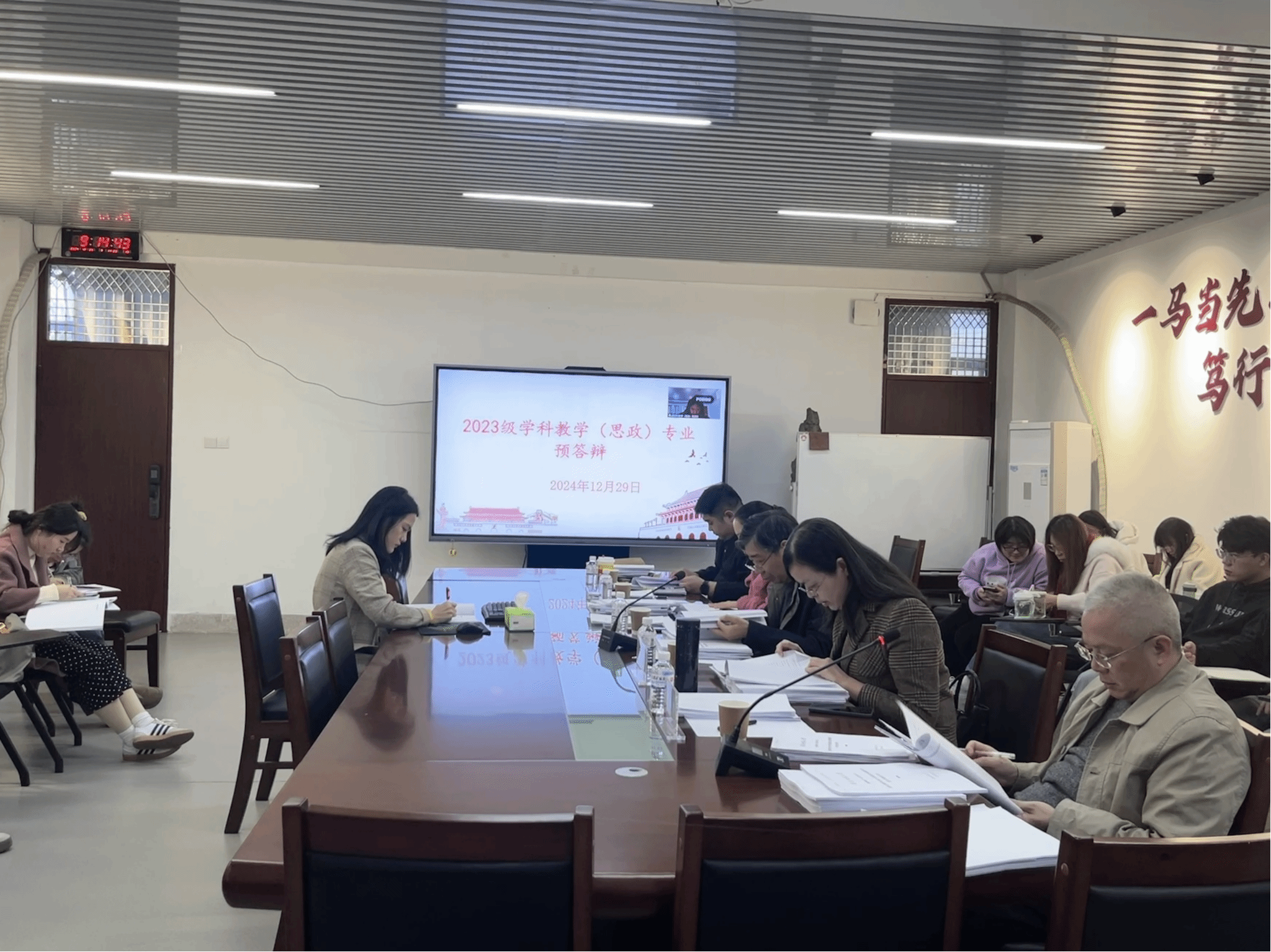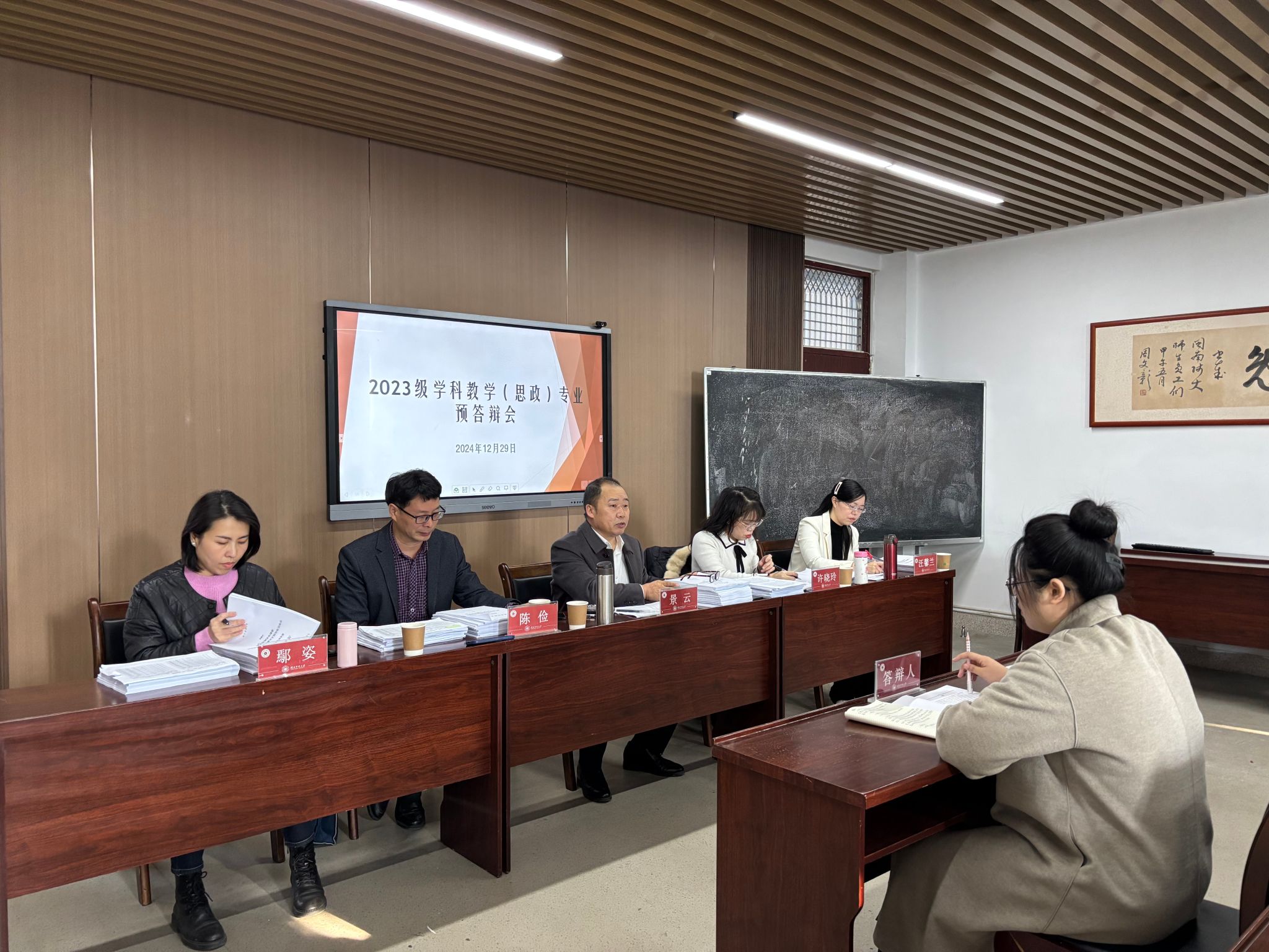 于2024年12月29日开展2023级学科教学(思政)硕士研究生毕业论文预答辩。预答辩分为2组,分别在综合楼中区404和综合楼中区604举行。