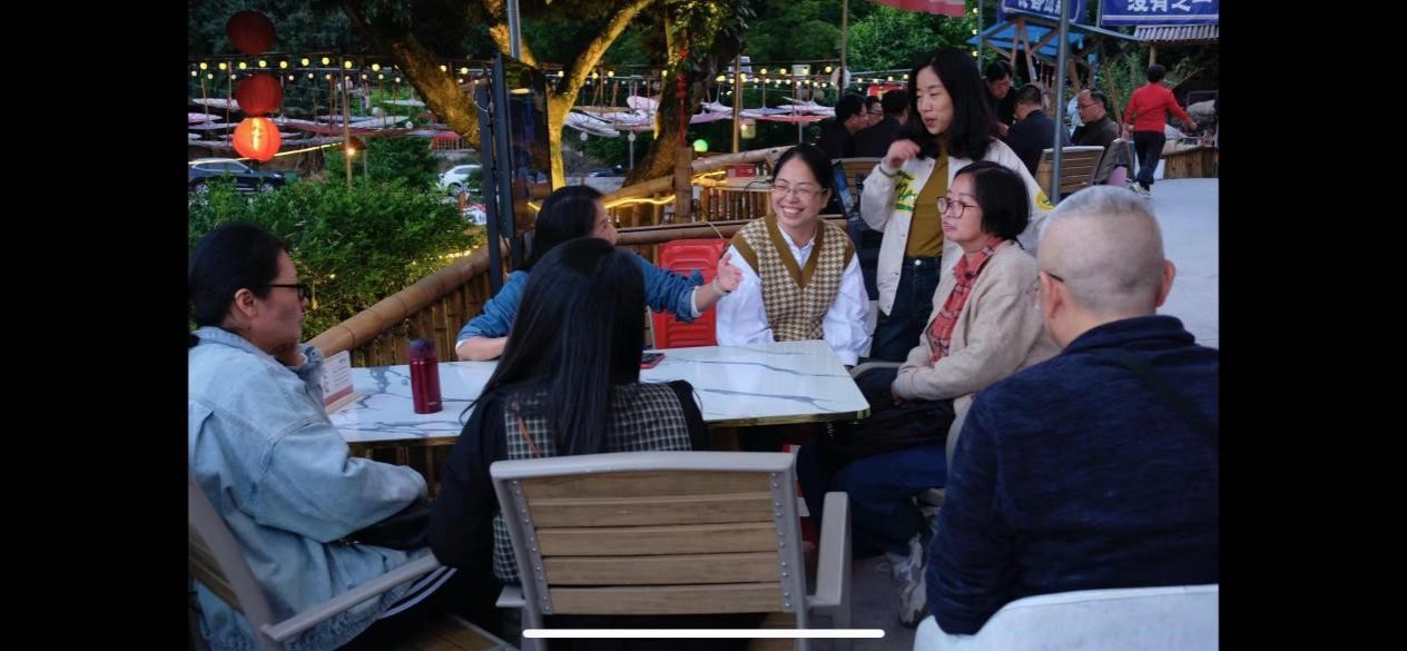 在和煦的阳光下,教职工们三五成群,或健步快走、或停留合影、或尽情游乐,平时工作的劳累在此刻得到了舒缓。在茶屋里教职工们围炉煮茶,享受着美食,闲聊对工作、家庭与生活的感悟。一张张照片,定格了美好,笑容洋溢在脸上,力量凝聚在心底。