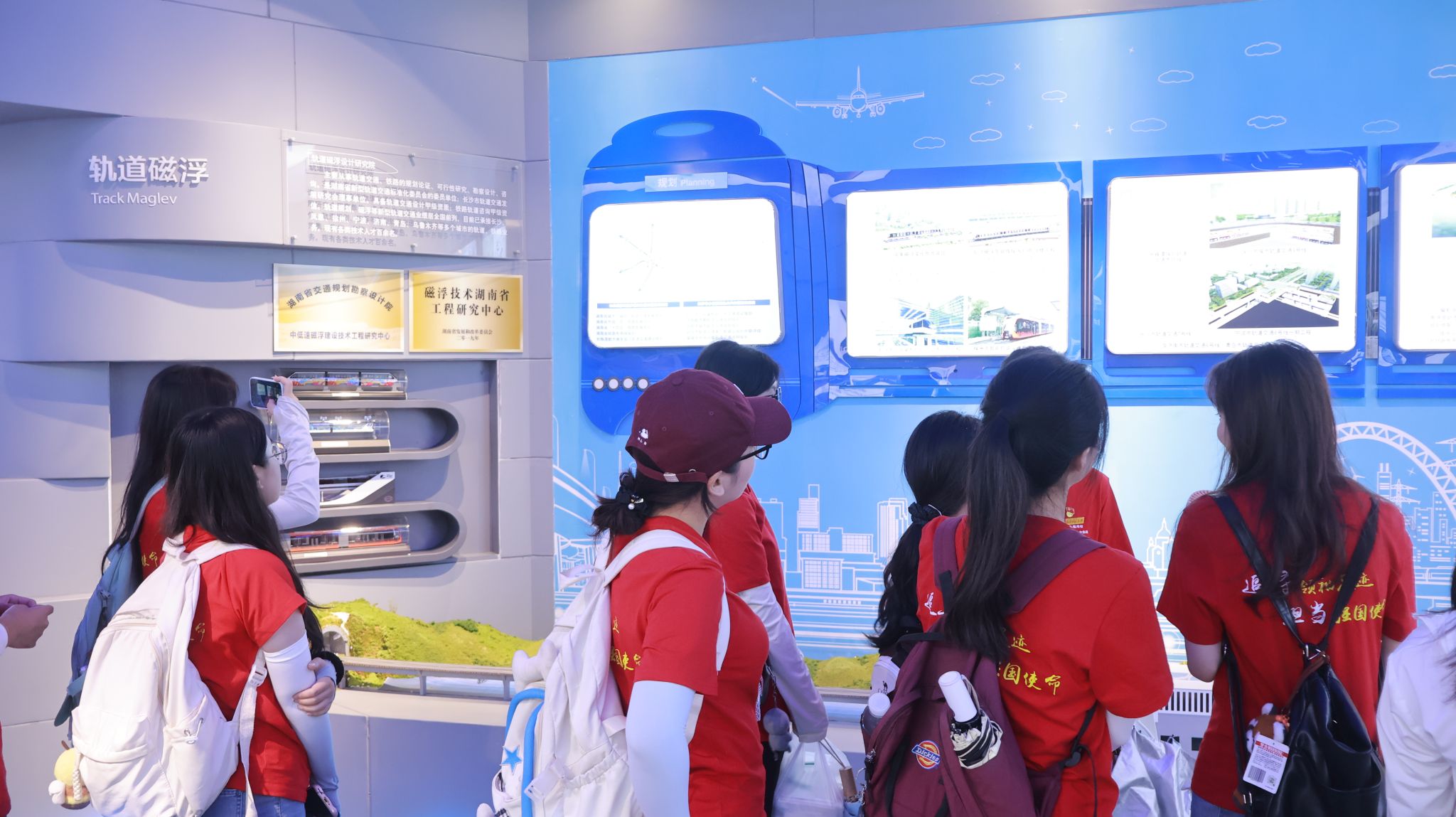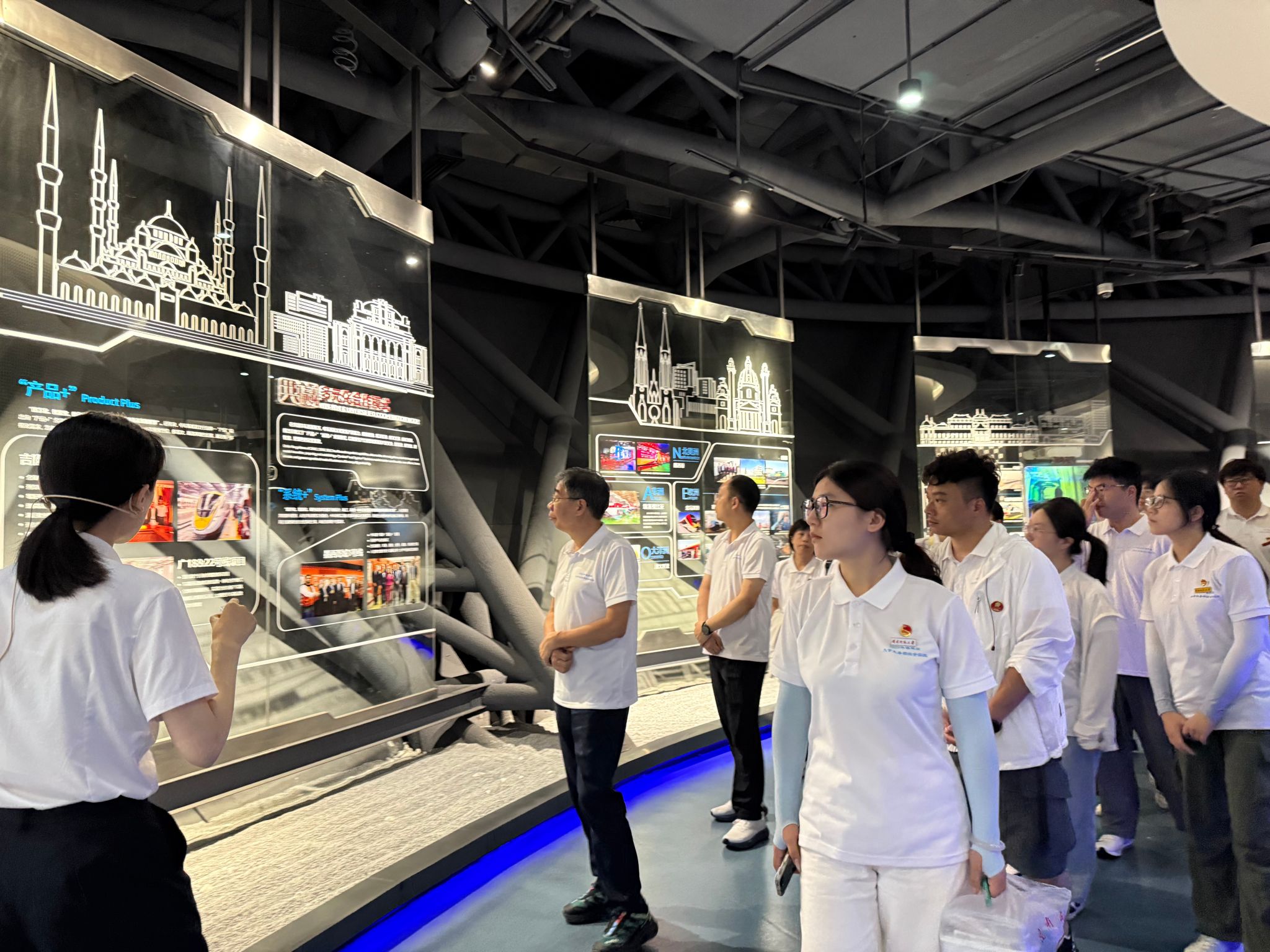 习近平总书记在湖南考察时强调,“要在打造国家重要先进制造业高地”上持续用力。在参观被称为智慧基建“最强大脑”的湖南省交通规划勘察设计院有限公司时,队员们站在被习近平总书记赞誉为“中国的圆月亮”的矮寨大桥模型面前,深刻领悟到在党的领导下,中国人民“逢山开路、遇水架桥”的大无畏精神。通过数字孪生技术,师生观看了湘江大桥建设过程在云端的实时推演,一个个“天堑变通途”的故事让中国式现代化蓝图更加具象化。在中车株洲电力机车有限公司,队员们近距离感受“中国速度”背后的科技力量,磁悬浮列车研发实验室中,工程师生动展示着“产学研用”协同案例,校企联合攻关的永磁牵引系统,助力列车能耗降低30%。在粤汉铁路株洲总机厂筹备处旧址,队员们聆听企业资深员工讲述祖孙四代坚守铁路的故事;在智能化车间,队员们观摩年轻的员工组装动车组、地铁车辆,深刻感受中车株机人“志存高远、坚韧不拔”的工匠精神与产业报国的深厚情怀。