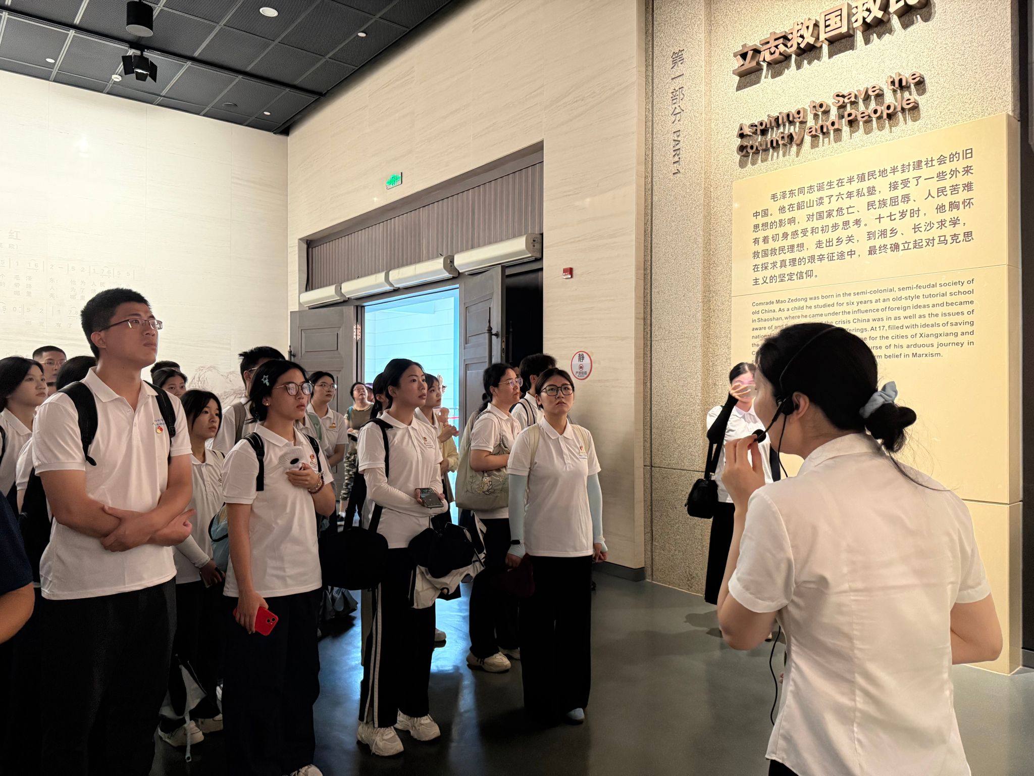 在韶山,师生参观了毛泽东主席的故居,并在毛泽东主席铜像广场举行“强国有我”敬献花篮缅怀先烈仪式;在刘少奇纪念馆,师生研读了《论共产党员的修养》手稿;在橘子洲,动漫屋