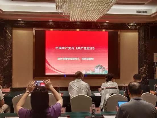 厦大党委党校副校长张艳涛教授倾情讲授《中国共产党与〈共产党宣言〉》。张教授首先明确为什么要研读《共产党宣言》,随后从国内外背景出发讲述《共产党宣言》的诞生、几篇重要序言、中译本等内容。随后,张教授全面分析“为人类构建了一个意义世界”“消灭私有制”“两个必然”等共产党宣言的主要观点,最后强调中国共产党是《共产党宣言》的忠实传人,要学精用好用活《共产党宣言》。