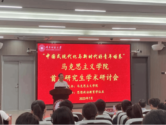近年来在学科建设及研究生人才培养方面所取得的成绩,希望学院能够踔厉奋发,继续培养“理论素养高、实践能力强、道德品质优”的德才兼备的高素质人才,为推动学校研究生教育高质量发展再立新功。方琼在致辞中回顾了学院研究生教育的发展历程,希望以研讨会为契机,帮助师生更好地理解中国式现代化的本质特征,引导教育学生自觉地肩负起实现中华民族伟大复兴的使命,争做堪当时代重任的有为青年。