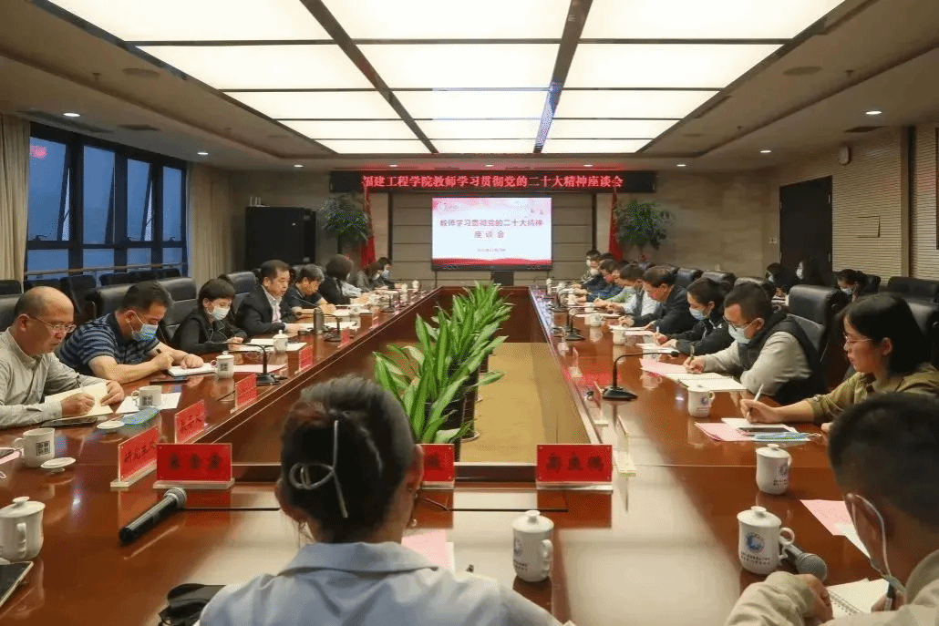 日前,福建工程学院召开教师学习贯彻党的二十大精神座谈会。来自教学、科研一线的骨干教师从生态文明建设、乡村振兴、科技创新、人才强国、从严治党等多方面多角度,结合自身工作实际,就学习党的二十大报告精神交流心得体会。校党委书记吴仁华强调,高校教师要对党的二十大提出的新思想新论断进行系统解读,做到全面系统学、抓住重点学、示范带头学、联系实际学,找出贯彻落实的着力点和落脚点,深刻理解“两个确立”的决定性意义,牢记为党育人、为国育才的初心使命,把党的二十大精神落实到学校建设发展中,体现在各项改革任务的行动上。校长童昕希望广大教师通过集中学习、交流分享等形式,共同谋划推动学校事业的发展,为早日实现学校“三大目标”而团结奋斗。