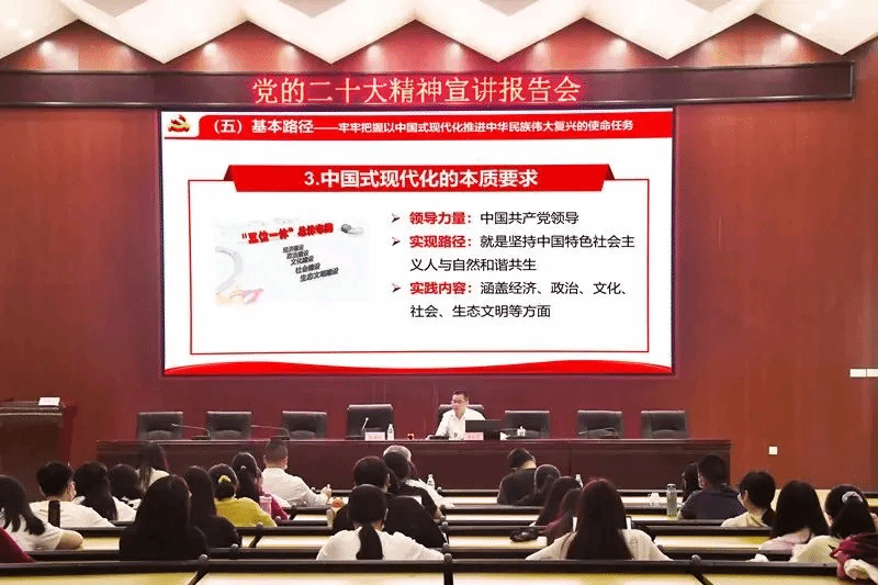 学生工作部积极构建“进课堂—骨干导学”“进社区—舍长领学”“进网络—全员共学”的“三进三学”宣讲模式,齐力推进学习宣传贯彻党的二十大精神宣讲全覆盖。