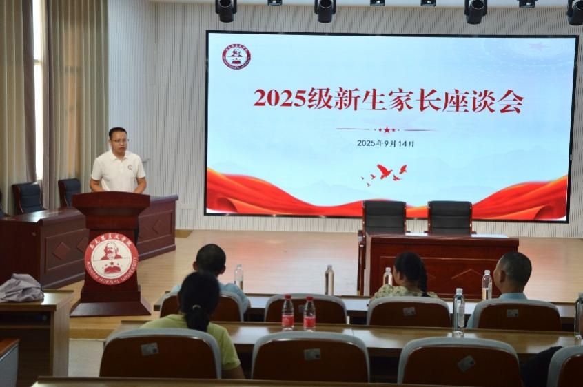 于东门梯教马院礼堂召开2025级新生家长座谈会,会议由动漫屋