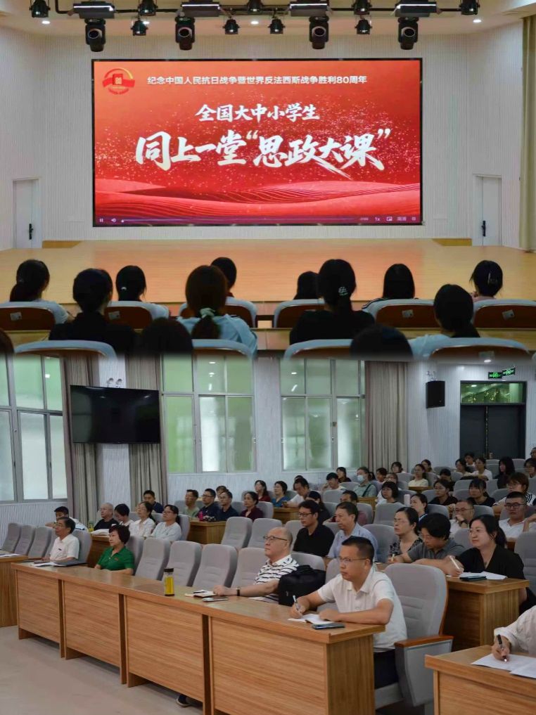 组织师生于马院礼堂共同观看全国大中小学生同上一堂“思政大课”之大学篇《大国担当》。(通讯员 王烨)