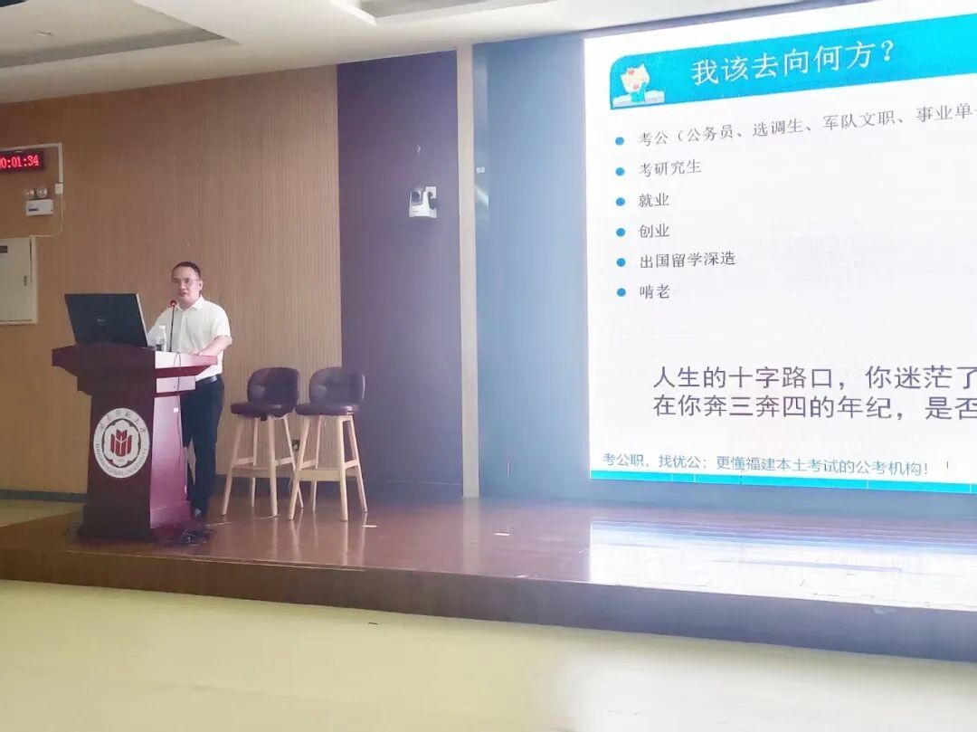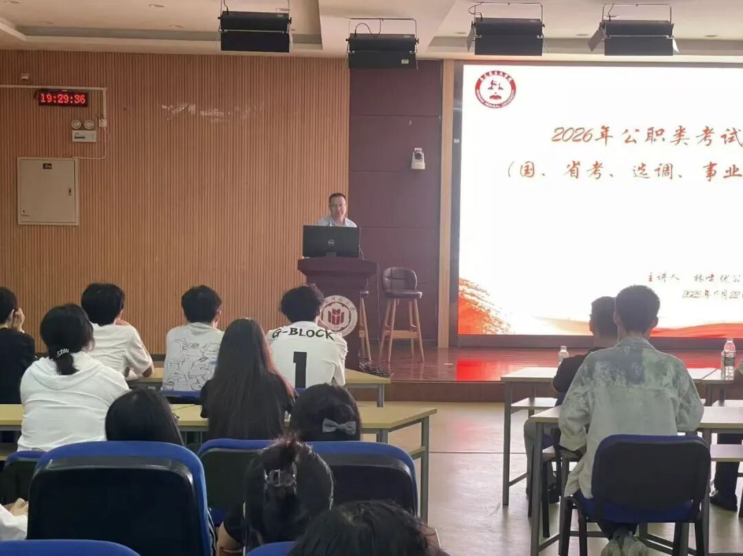 于励志楼120开展“2026年公职类考试全程备考指导”专题讲座。本次讲座由优公教育校长林啸主讲,院党委副书记邓战军主持,23级全体学生参加。(通讯员 黄娇萍)
