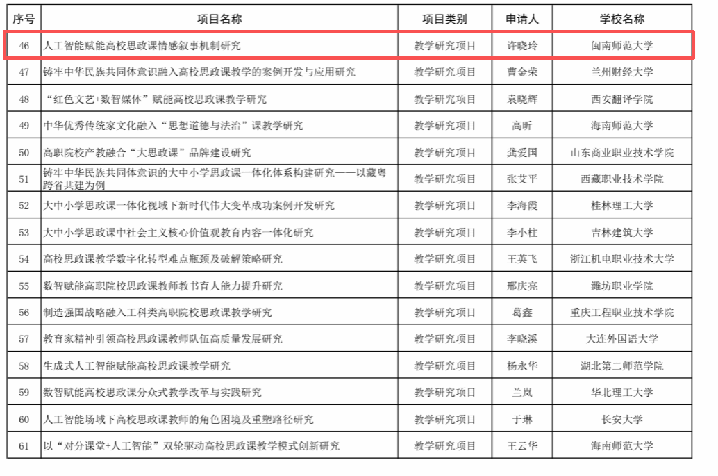 教师许晓玲申报项目《人工智能赋能高校思政课情感叙事机制研究》成功入选。(通讯员 杨纯真)