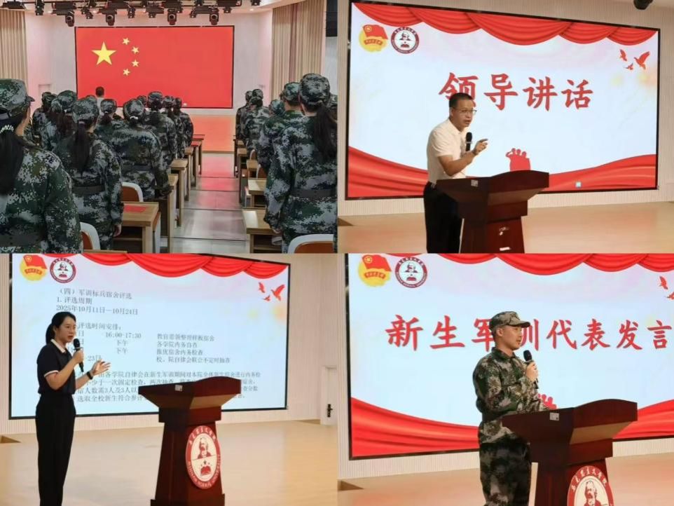 于东门马院礼堂召开2025级新生军训动员大会。会议由辅导员沈书伊主持,动漫屋