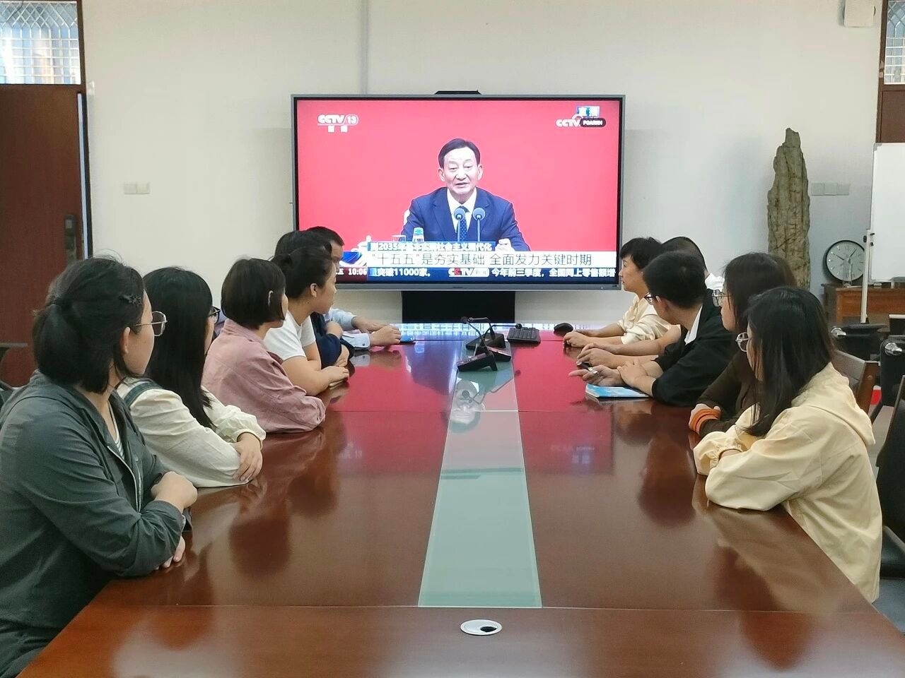 10月24日上午,动漫屋 组织师生于综合楼中区404会议室共同观看党的二十届四中全会精神解读直播。(通讯员 谢诗瑶)