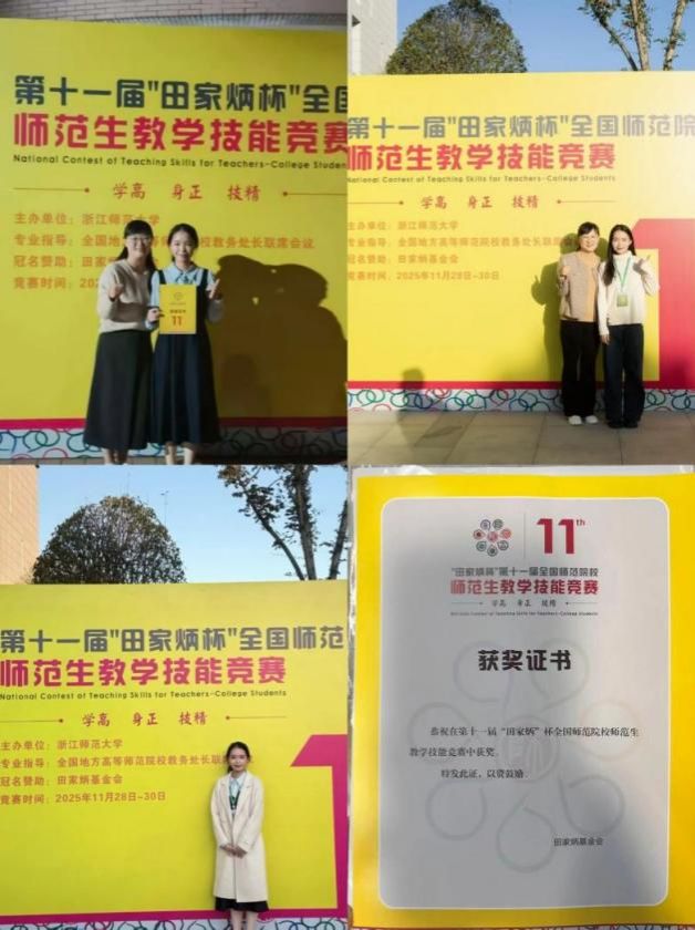 24级学科教学(思政)专业黄诗琴同学荣获全国二等奖,陈美美同学荣获全国三等奖,韩瑜同学荣获全国优秀教学设计奖,郑育琛教授荣获优秀指导教师奖。(通讯员 杨纯真)