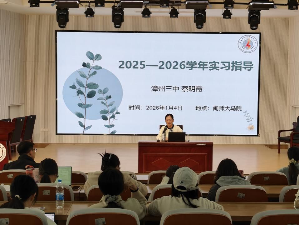 校友漳州三中蔡明霞老师主讲,2023级全体本科生参加。蔡明霞老师结合自身丰富教学经验,围绕教学实习、班主任工作开展进行了系统讲解与深入指导。(通讯员 黄娇萍)