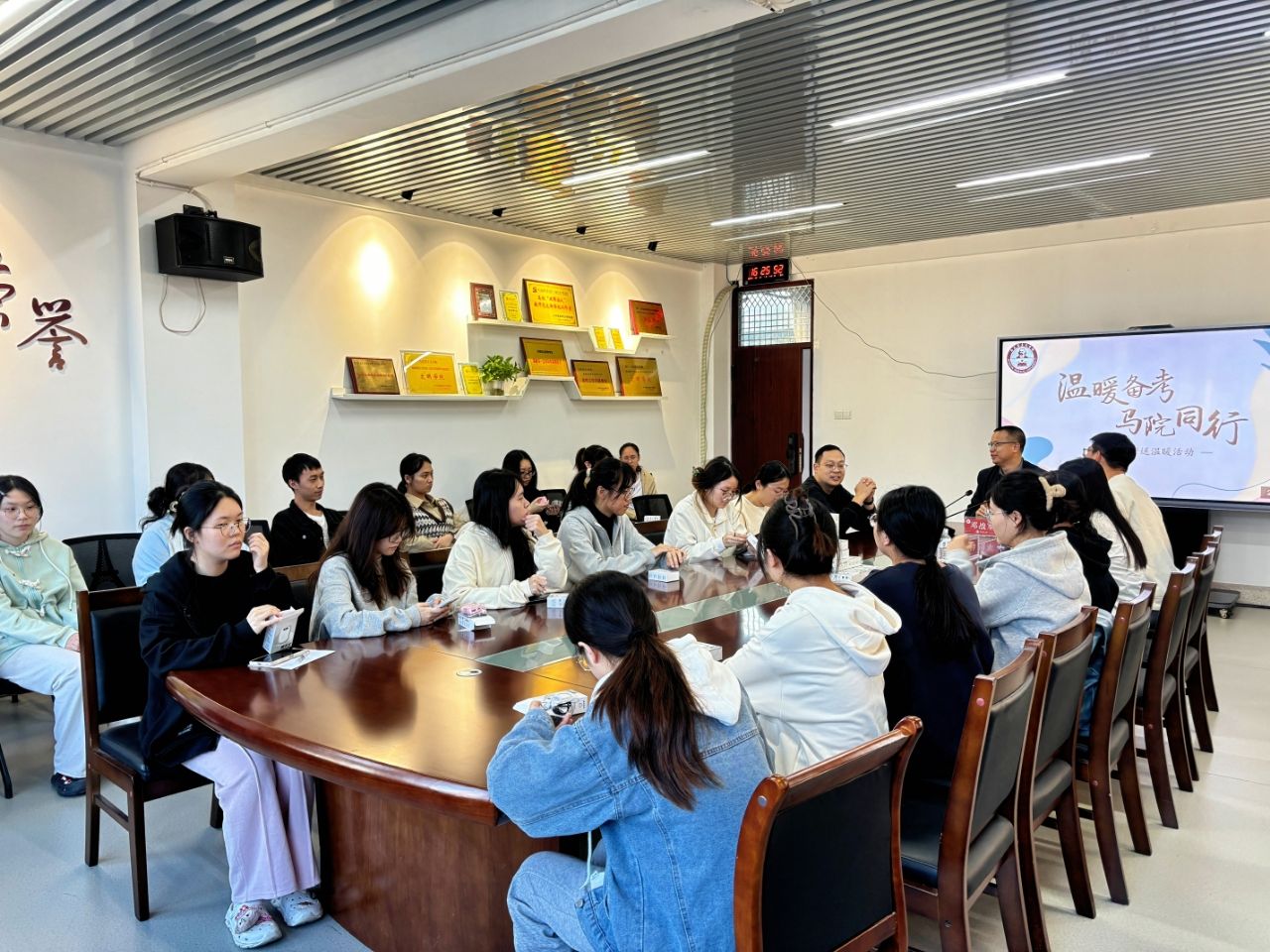 在综中404会议室举行了“温暖备考 马院同行”考研送温暖活动,院党委副书记邓战军、团委副书记潘怀杰、辅导员任程龙、沈书伊为2021级考研学子送上了诚挚的祝福和精心准备的“考研加油礼包”。(通讯员 张小敏)