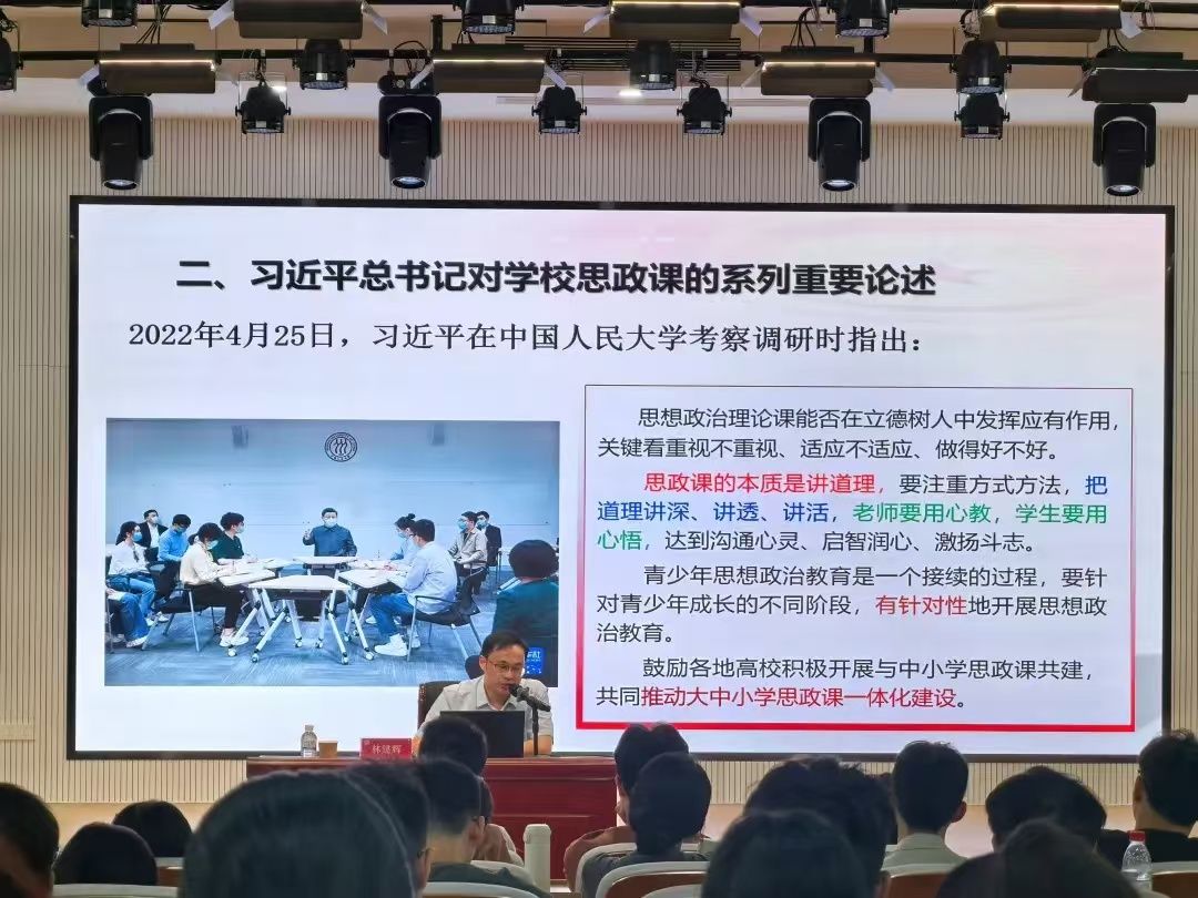 第六期正式党员培训班开班式暨第一讲在东门马院礼堂举行,邀请林建辉教授为全体学员讲授主题党课。开班式由党委书记方琼主持,全体师生党员参加。(通讯员 陈精焕)