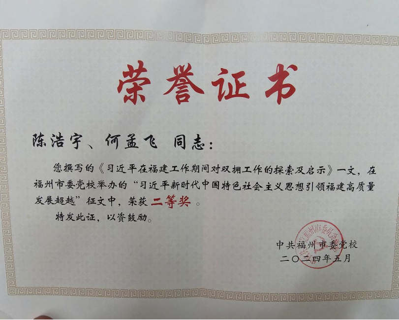 2022级马克思主义中国化研究专业硕士研究生陈浩宇参会,参会论文《习近平在福建工作期间对双拥工作的探索及启示》获二等奖。(通讯员 陈浩宇)