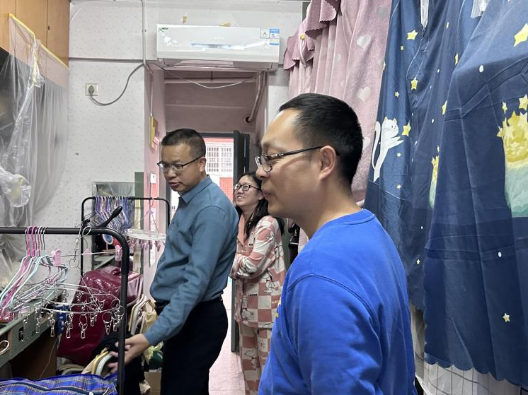 开展假期宿舍安全检查工作,学院党委副书记邓战军、团委副书记潘怀杰、辅导员任程龙,沈书伊参加。(通讯员 胡紫嫣)