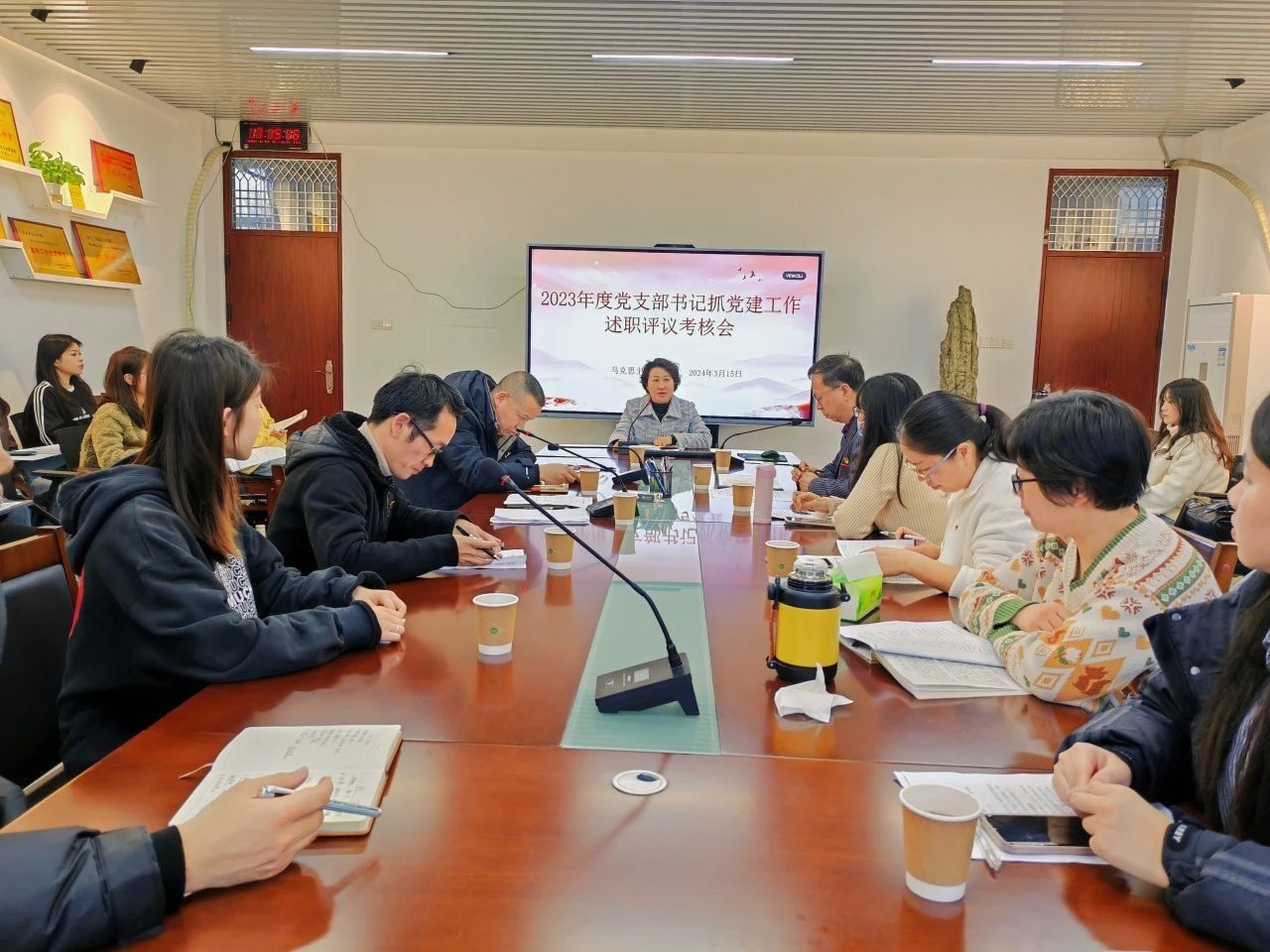 2023年度党支部书记抓党建工作述职评议考核会在综合楼中区404召开,院党委书记方琼、党委副书记邓战军、各党支部书记及支委参加了本次会议,会议由党委组织员陈精焕主持。(通讯员 汪相汝)