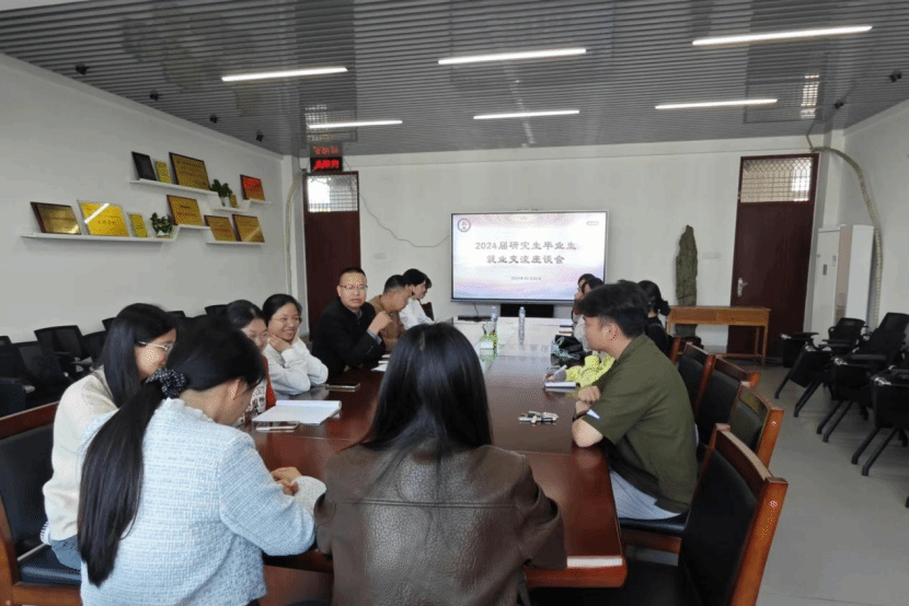 在综合楼中区404召开2024届研究生毕业生就业个性化指导交流会,院党委副书记邓战军、院团委副书记潘怀杰参会。(通讯员 柴文茹)