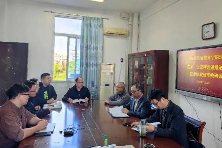 11月28日下午,《思想政治教育学原理》国家一流课程建设推进会暨虚拟教研室教研会在综合楼东区501会议室召开。课程项目负责人吴学兵教授主持会议,该课程项目全体成员和部分思政专业教师参与研讨活动。(通讯员 吴学兵)