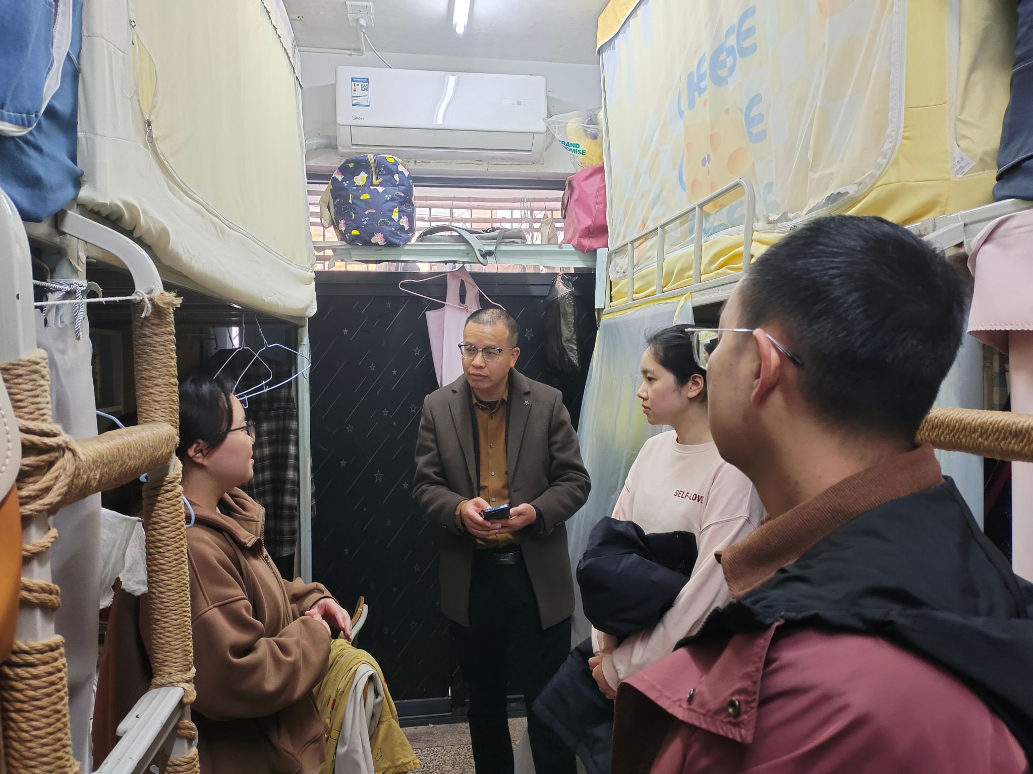 党委副书记邓战军带队前往学生宿舍区开展寒假离校安全检查,提醒离校注意事项。(通讯员 任程龙)